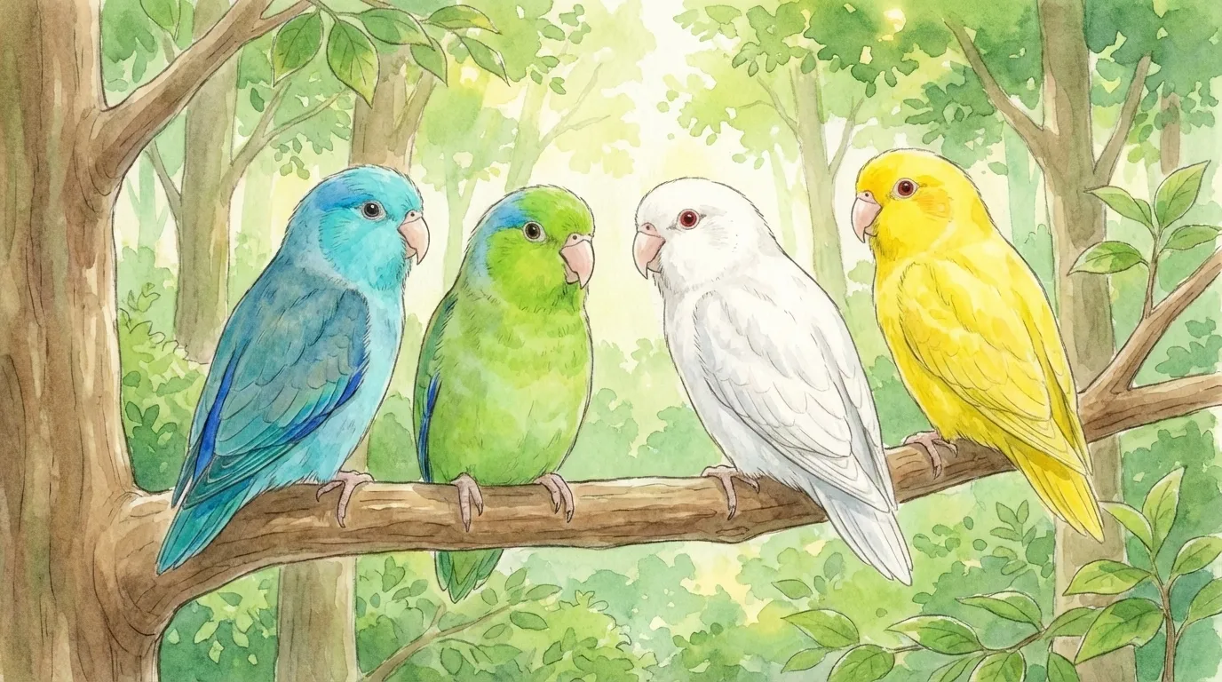 マメルリハの値段に幅がある最大の理由は、カラーバリエーションの豊富さにあります。グリーンやブルーのような流通量が多いスタンダードカラーは価格が安く、オリーブやモーブのように繁殖が難しいレアカラーになると一気に値段が跳ね上がります。